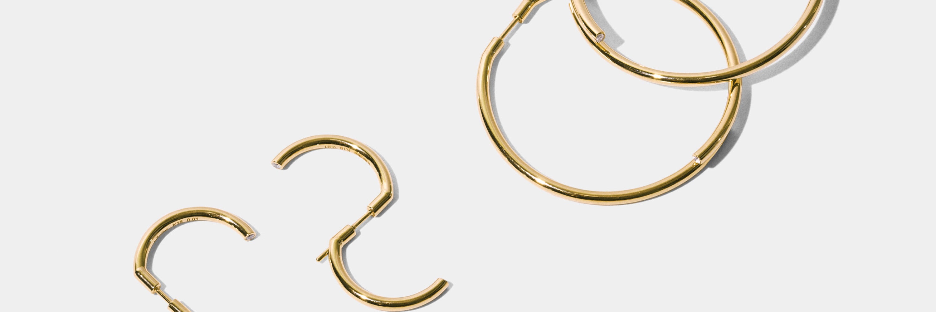 2つの半円を耳にセッティングして重なり合うことで誕生するフープピアスと、 金具を使用せず着脱が可能な独自の構造のバングルが登場しました。