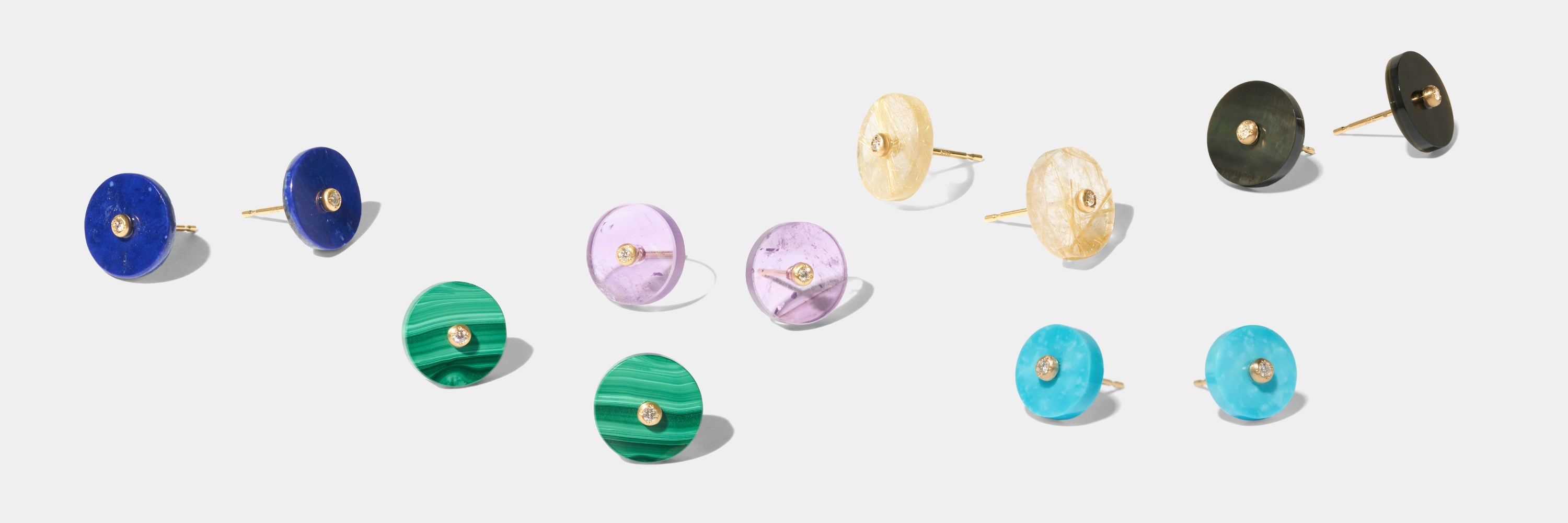 石の中心にポイントとなるダイヤモンドが煌めくピアス「PINS」。
