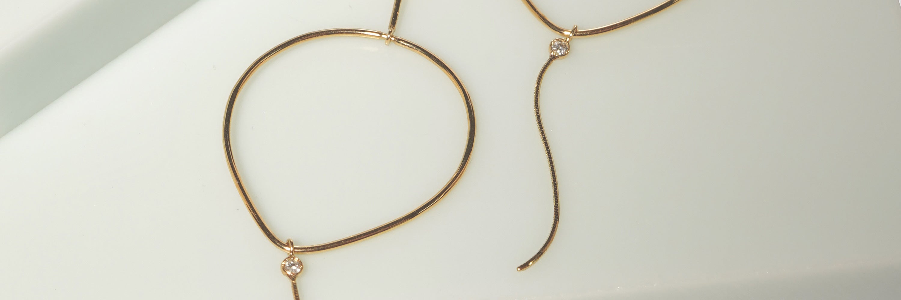 These earrings bounce and sway like real balloons, with their supple gold wire and chain, and the central diamond sparkling with every movement.