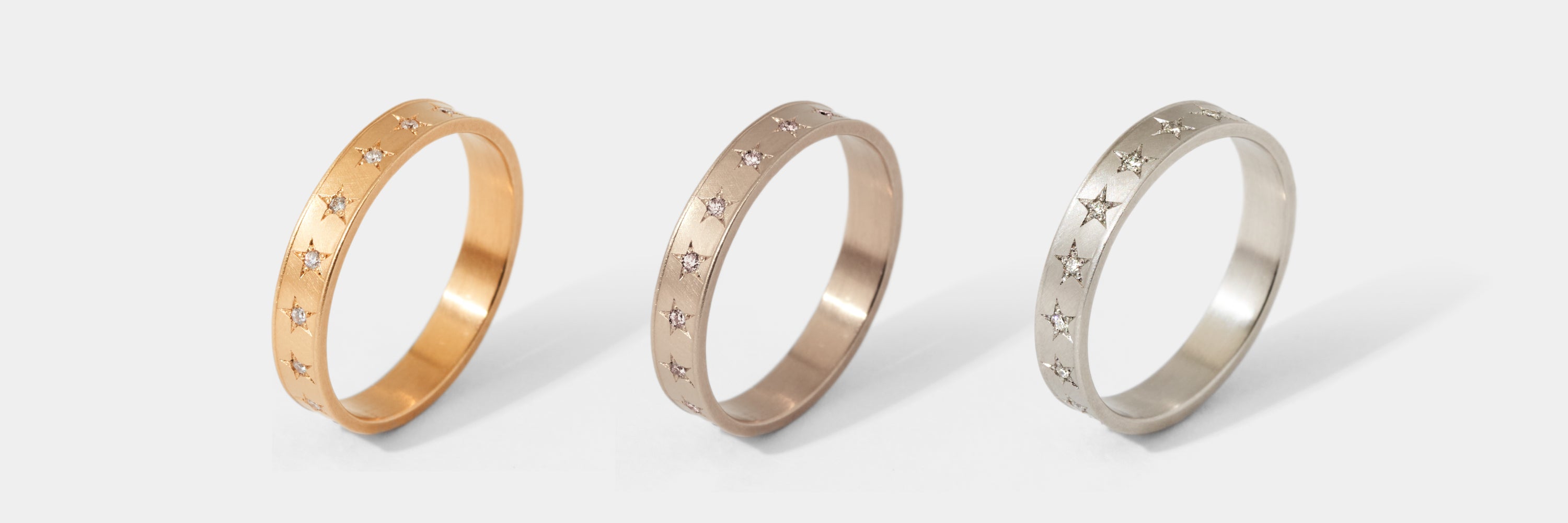 Each diamond is carefully carved into a star shape by an artisan, and twinkles like the stars in the night sky, emitting a delicate sparkle.