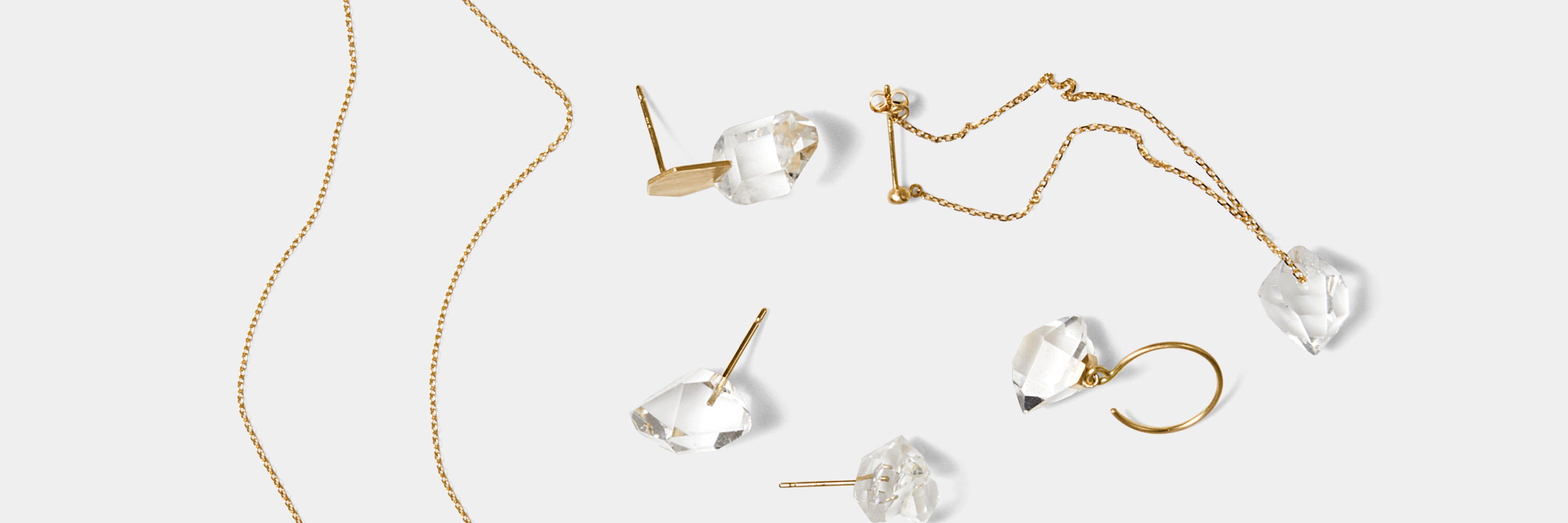 HERKIMER DIAMOND QUARTZ_Pierced Earring_Chain Short
