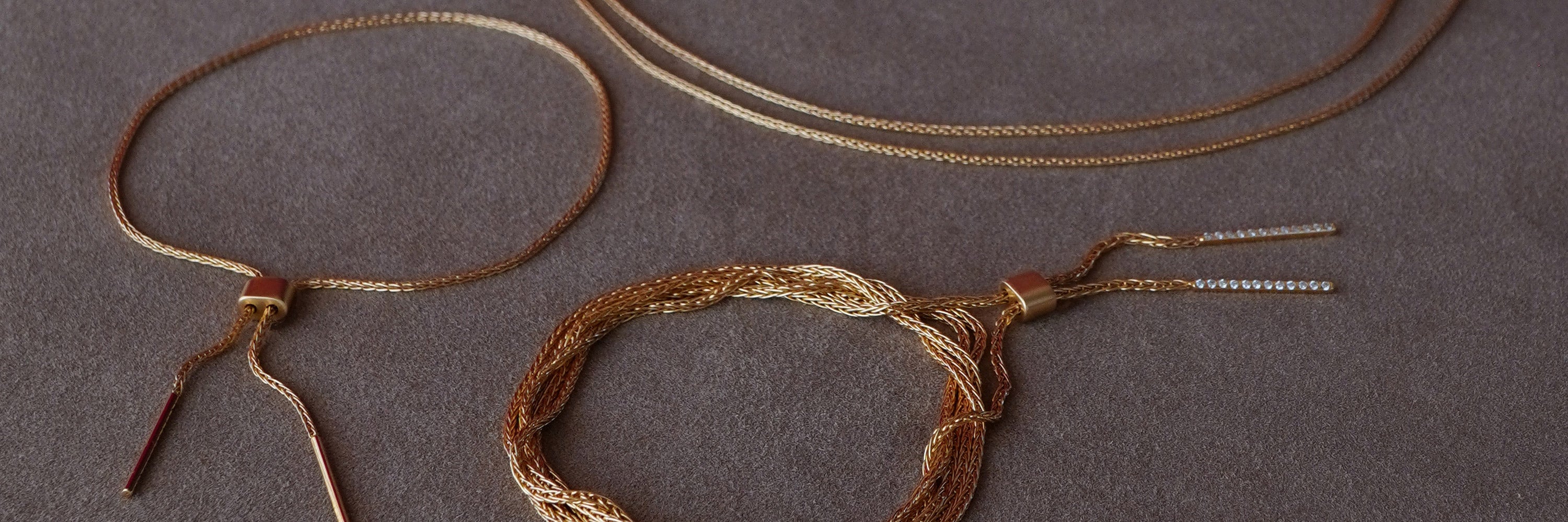 The chain, named Spiga, symbolizes the ear of wheat, which has been loved since ancient times as an auspicious motif, and features a simple design that pursues functional beauty so that it can be worn in any style.